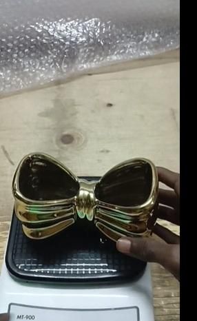 Product Name: Elegant Bow Shaped Organizer for Makeup AccessoriesPackage Contains: It has 1 Pack of Elegant Bow Shaped Organizer for Makeup AccessoriesMaterial: CeramicProduct Dimension:7D x 13.5W x 8.5H cmCombo Pack: Pack of 1Weight: 429 gmsAdditional Information:�Elegant Bow Design: Beautiful bow-shaped design with a high-gloss gold finish adds instant luxury to your vanity or workspace.Premium Ceramic Build: Made of durable ceramic with a smooth metallic coating ? sturdy, fade-proof, and easy to clean.Multi-Purpose Organizer: Perfect for holding makeup brushes, pens, lipsticks, or art tools ? keeps your desk clutter-free and stylish.Compact Yet Spacious: Ideal size ? fits comfortably on dressing tables, office desks, or bathroom counters.